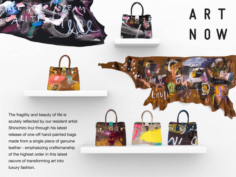 The artist’s own brand “guernika” is suggestive of a new world of creation beyond art and fashion, such as painting on clothes and bags.