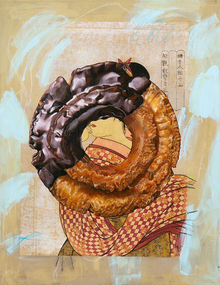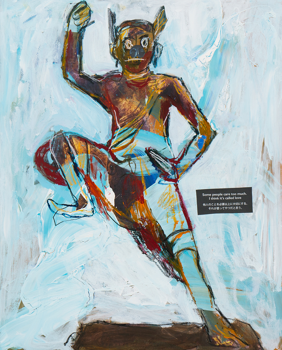 Inui’s works include paintings, collages, oil paintings, photographs, images, and even fashion tools. His works make full use of a wide range of materials and techniques as he probes the issues of social networking problems in contemporary society and problems with consumeristic fashion and art.